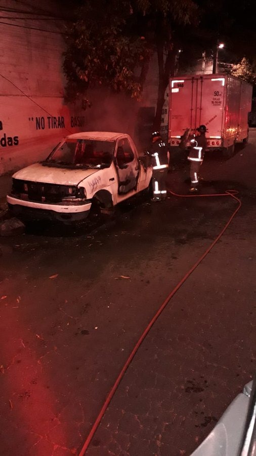 Durante los festejos de Año Nuevo una camioneta abandonada fue incendiada por sujetos que quemaban cohetones en la colonia del Gas de la alcaldía Azcapotzalco.