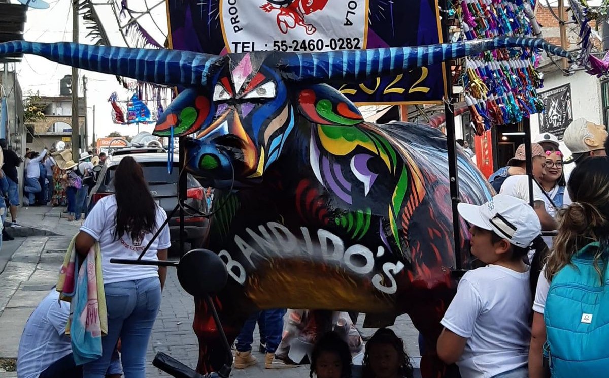 Después de dos años de suspender la feria de la pirotecnia por la pandemia de covid-19, los artesanos ofrecieron su toro en el altar a San Juan de Dios como símbolo de fe.
