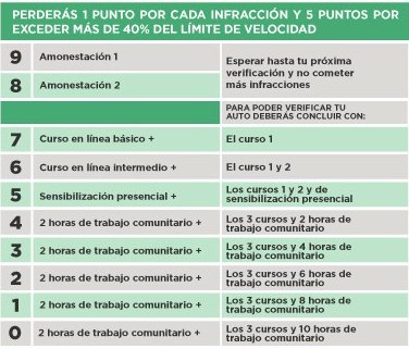- Cada infracción registrada por los sistemas de cámaras y radares restará un punto, a excepción de aquellas que sean por exceso de velocidad en más de 40 por ciento sobre el límite de velocidad establecido, en dicho caso se restarán 5 puntos.