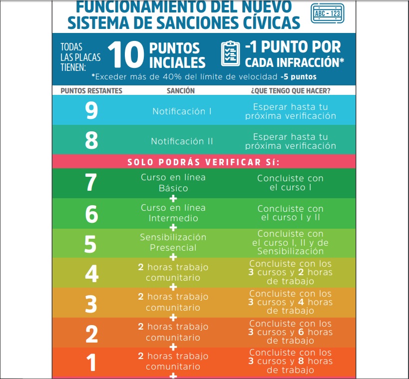 - De llegar a la eliminación de todos los puntos, perderás tu derecho a circular y a verificar, hasta cumplir completamente con las sanciones.