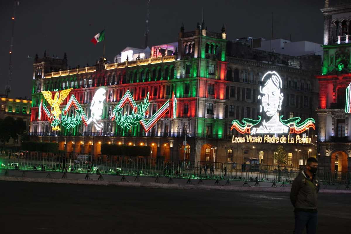 La iluminación patria en inmediaciones del Zócalo de la Ciudad de México fue prendida, a unas horas de que se realice la ceremonia del Grito de Independencia.