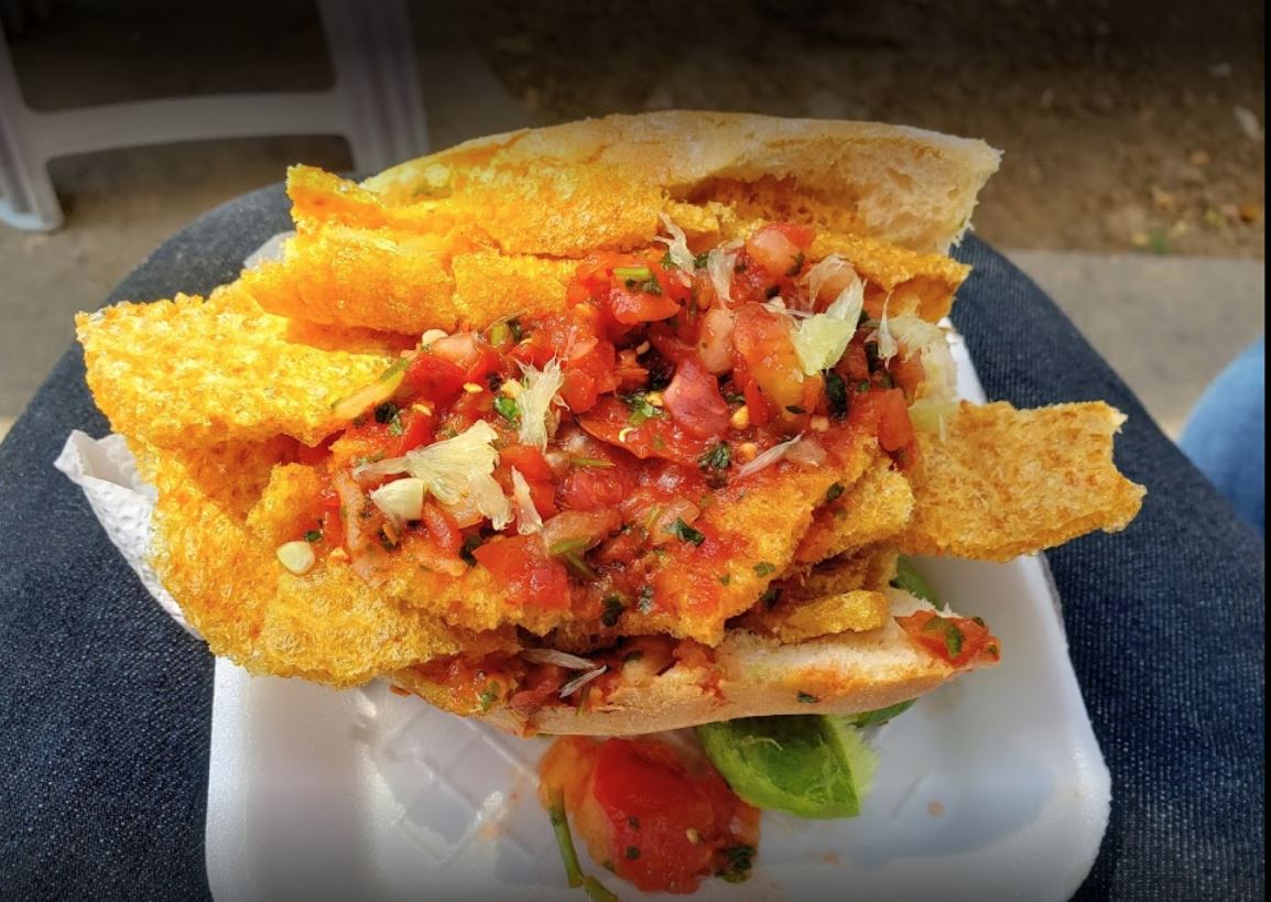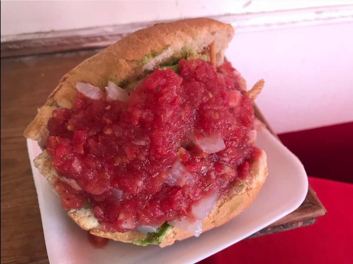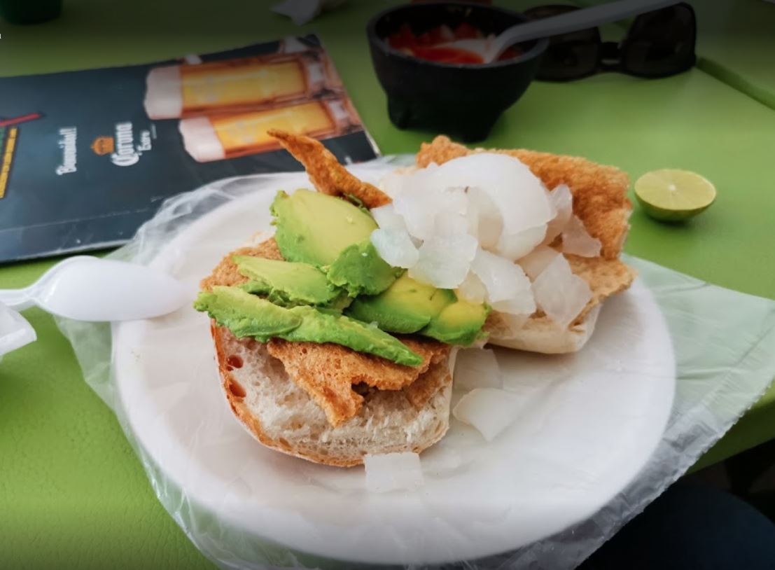 Una de las favoritas en este lugar es la guacamaya bautizada, que está bañada en salsa de chile de árbol y si deseas probar otra de las recomendaciones, te sugerimos los tacos dorados con aguacate.