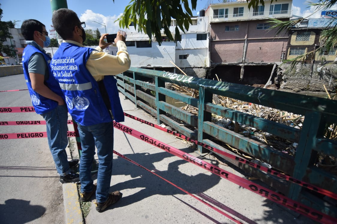 El personal de la OPS recorrió el jueves el hospital del IMSS Tula, el puente Zaragoza para presenciar y tomar constancia del desgajamiento de cimientos de construcciones, así como otros puntos del municipio, como parte de su labor para documentar el siniestro.