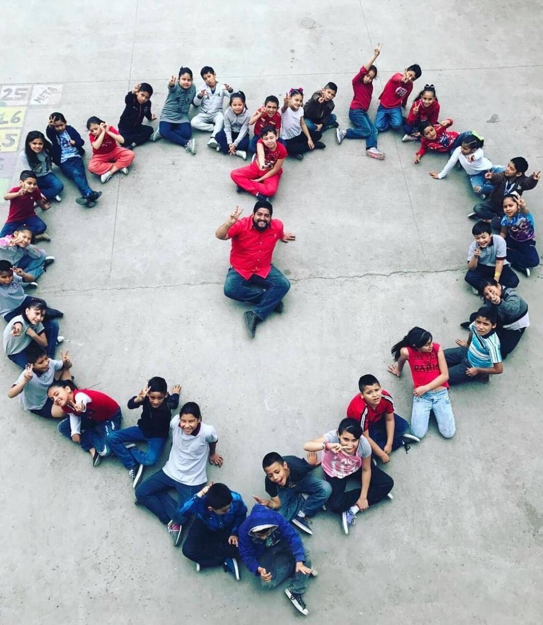 No obstante su fama en Facebook, Twitter y YouTube, el maestro con 11 años de experiencia está atento de sus alumnos de cuarto grado en la primaria pública Centenario de la Revolución Mexicana en Juárez, Nuevo León.