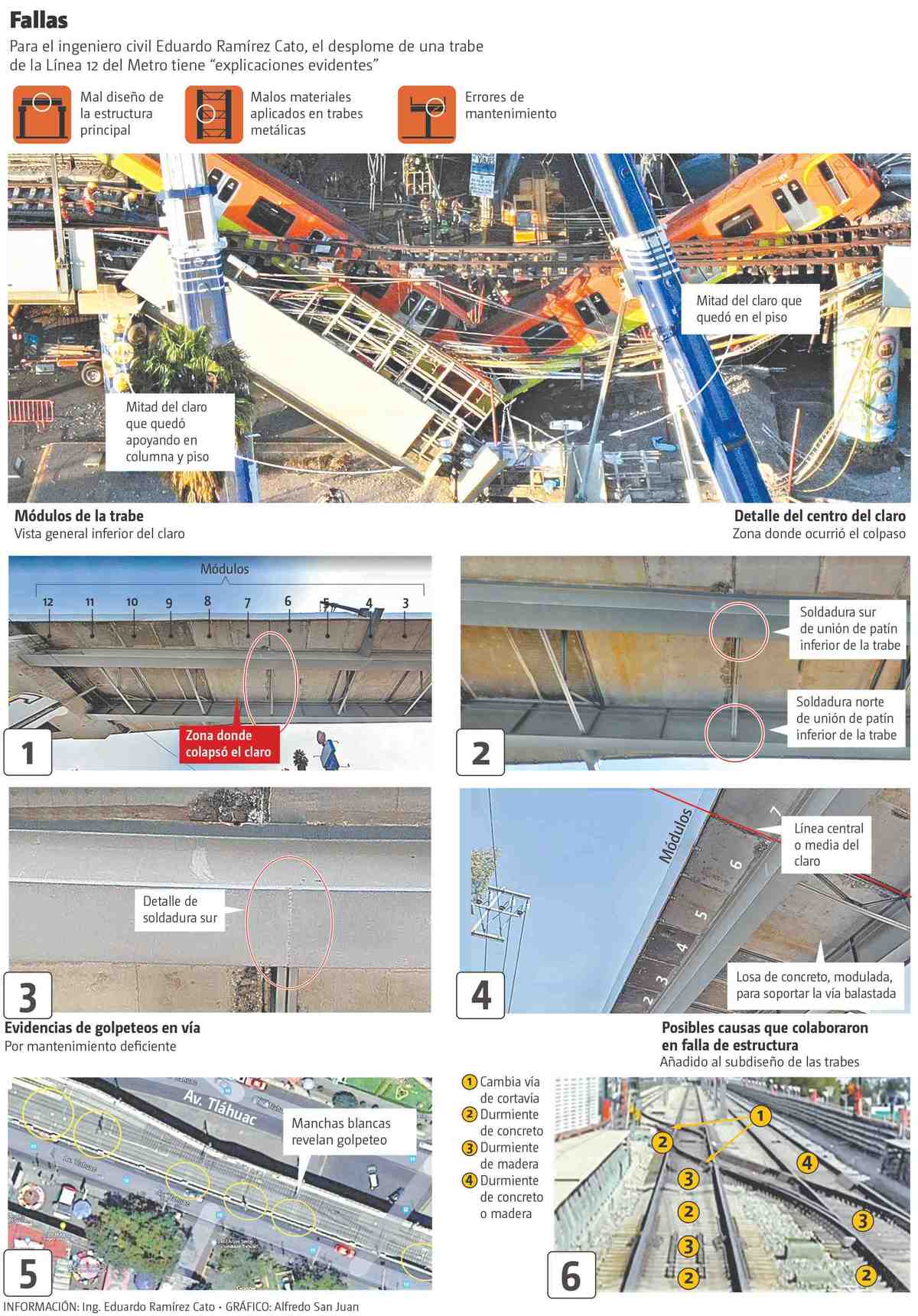 El ingeniero civil Eduardo Ramírez realizó un amplio estudio de la evidencia gráfica del antes, durante y después del colapso de una trabe de la Línea 12 del Metro de la Ciudad de México. Entre sus conclusiones detectó "una falla en el diseño, defectos en la construcción de la estructura y defectos en el mantenimiento de todo el tramo elevado".