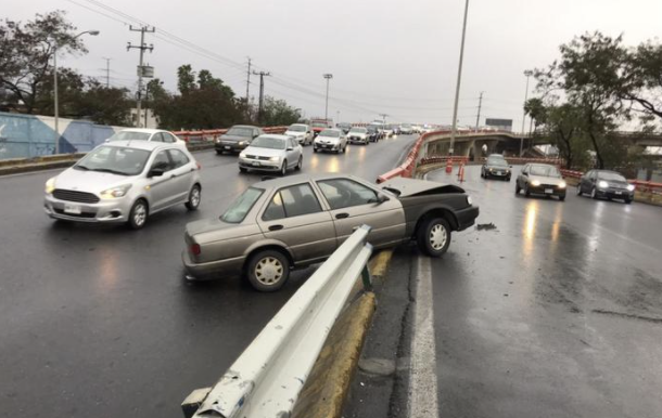 Por otra parte, en la avenida Manuel L. Barragán, en el municipio de San Nicolás de los Garza, un conductor derrapó su vehículo y terminó impactándose contra un barandal de contención en la vía.