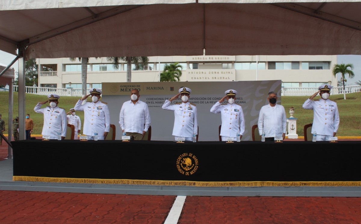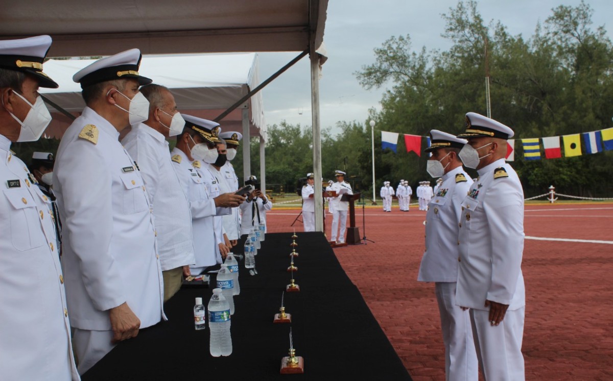 Debido a la actual situación nacional derivada de la contingencia sanitaria por covid-19, la Semar realizó un acto simbólico presidido por el Vicealmirante José Carlos Vera Vidal, donde se hizo la entrega conmemorativa de insignias y condecoraciones a los elementos ascendidos.