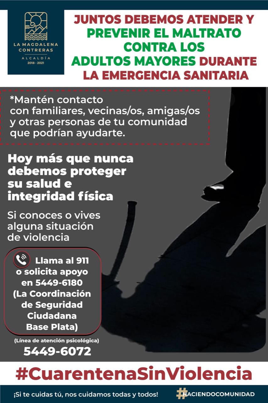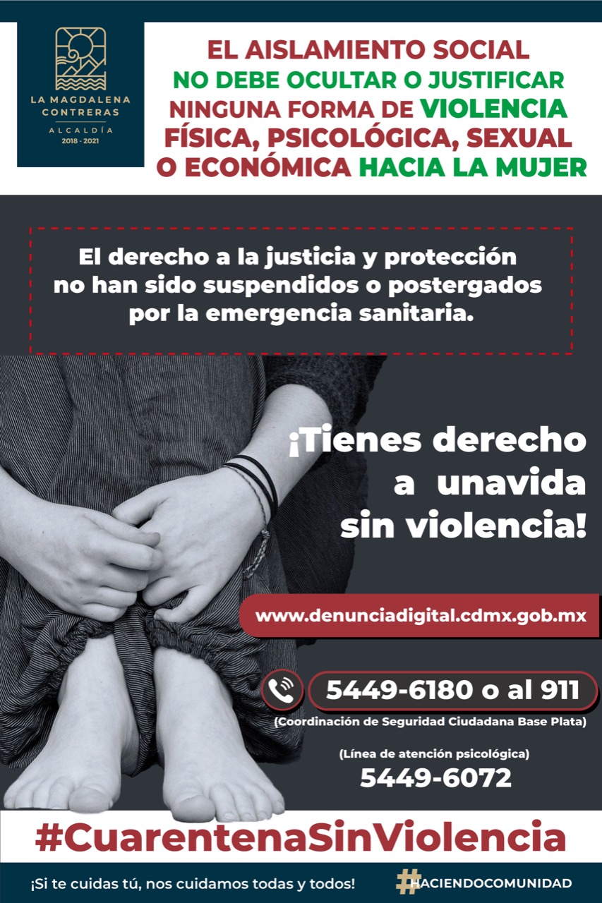 "CuarentenaSinViolencia", "La Violencia también es una pandemia", "En esta cuarentena digamos no al maltrato infantil", son algunas de las frases de la campaña que lanzó la alcaldía La Magdalena Contreras para combatir la violencia intrafamiliar, la cual ha aumentado ante la cuarentena debido a la pandemia de coronavirus.