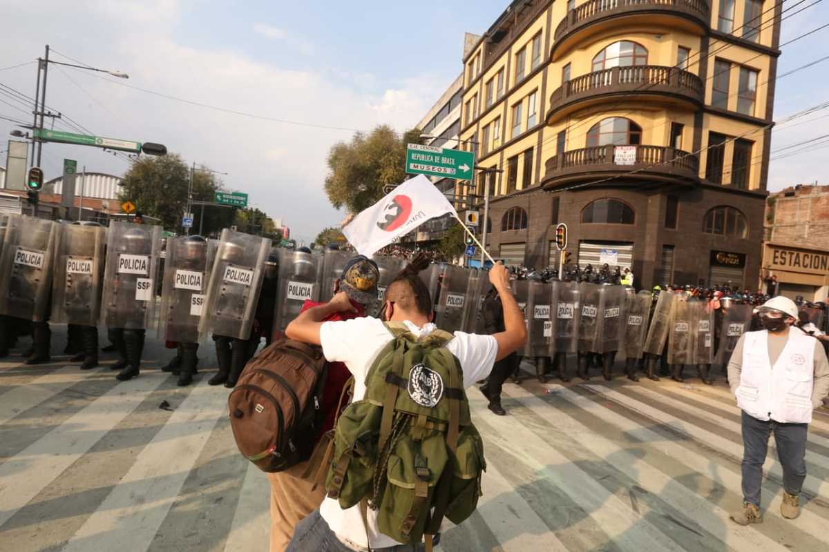Los policías capitalinos encapsularon al contingente anarquista para evitar que avancen hacia el Zócalo capitalino con los demás manifestantes; integrantes de la organización Marabunta intentan dialogar con los agresores.