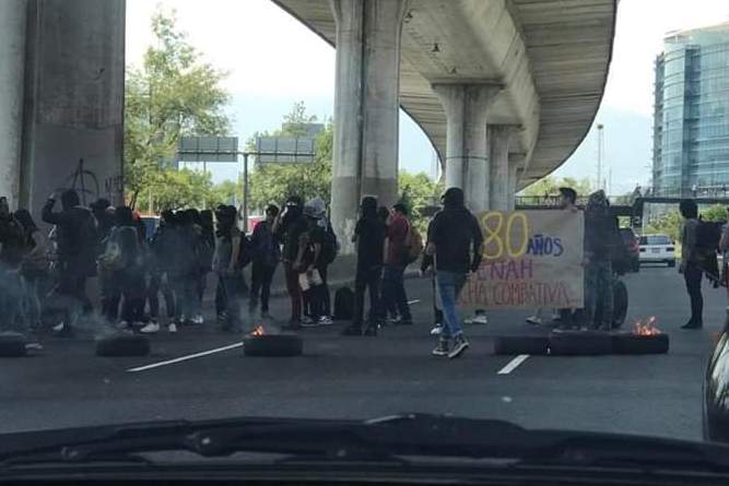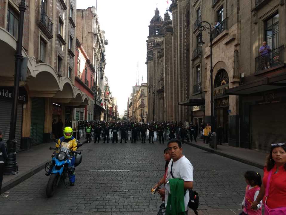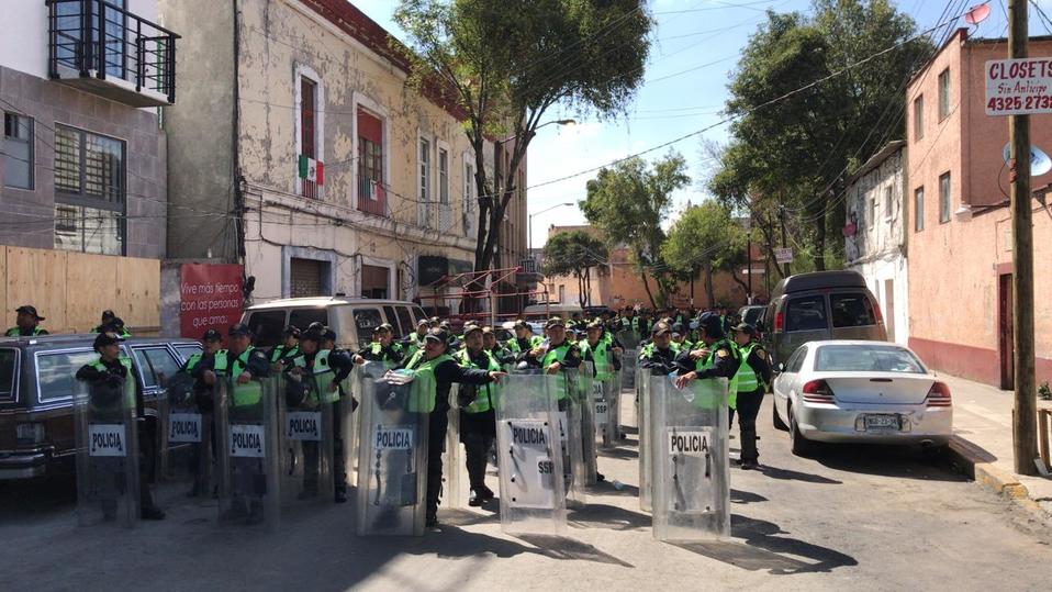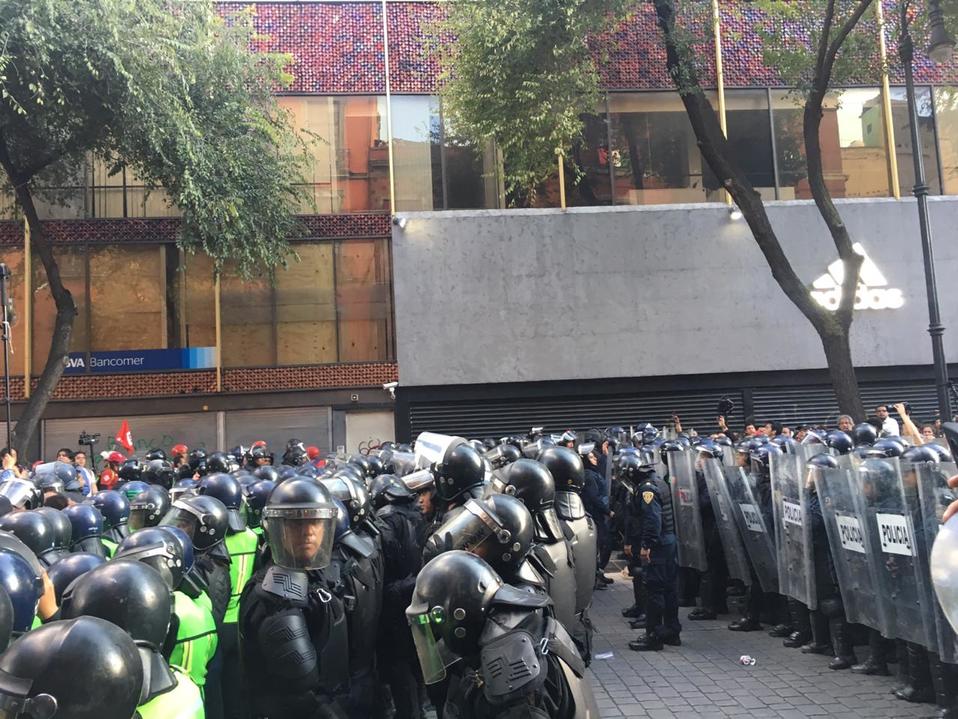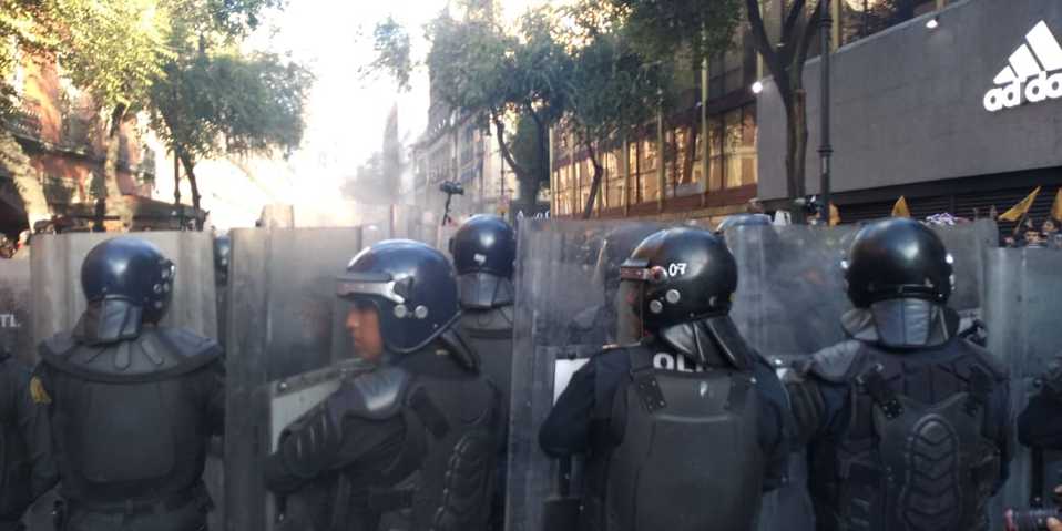 A la altura de 5 de Mayo e Isabel la Católiza se registran enfrentamientos entre elementos de la SSC y encapuchados.