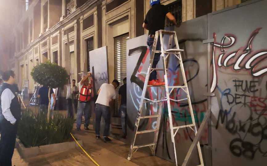 Con tapiales, 'blindan' edificios por marcha de 2 de octubre