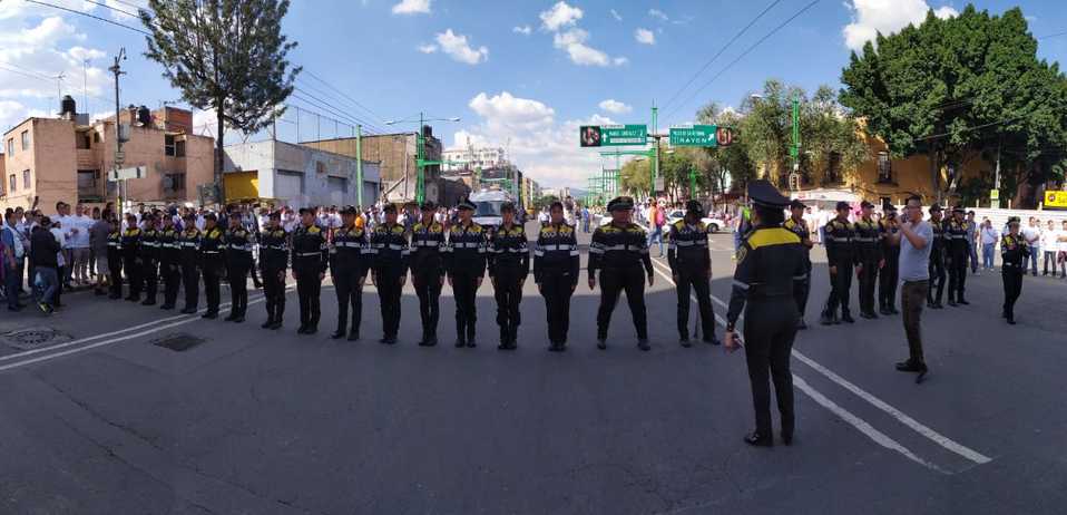 Elementos de la SSC encapsularon al último contingente que avanza sobre 5 de Mayo para entrar al Zócalo.
