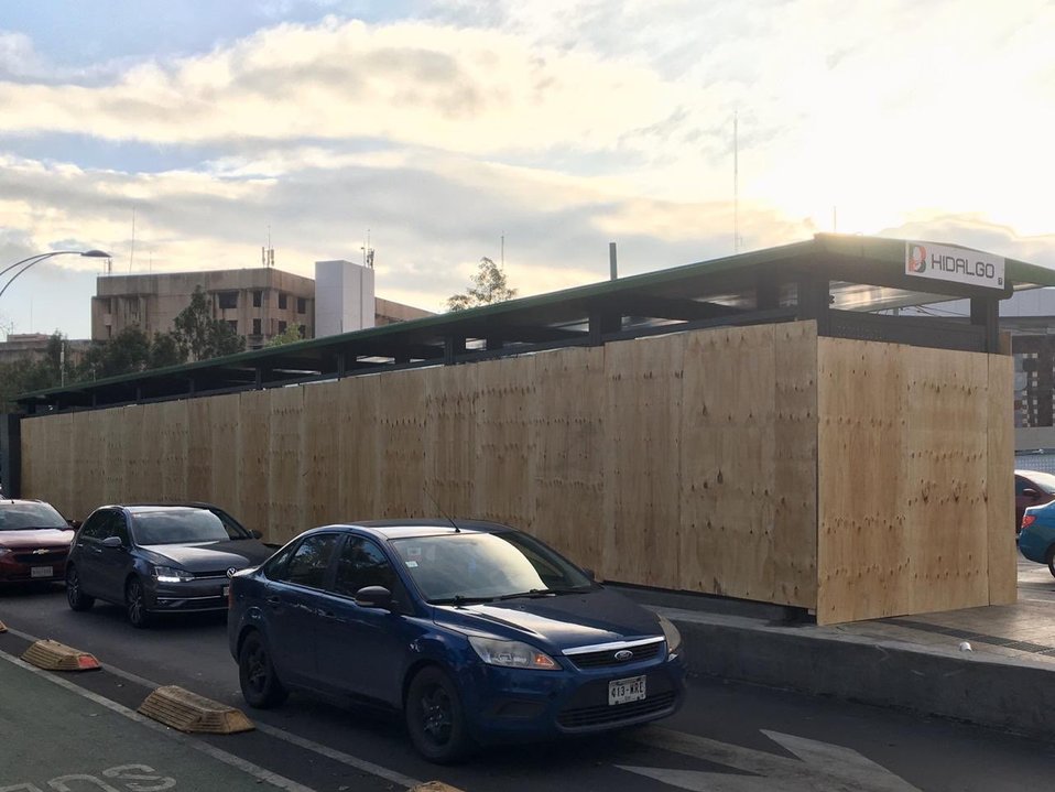 Se colocaron tapiales de madera en la estación Hidalgo de la Línea 7 del Metrobús, en Paseo de la Reforma, debido a la marcha del 2 de octubre.