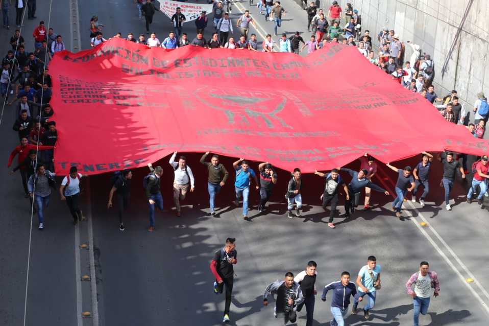 El Comité 68, estudiantes, padres de los normalistas y otros contingentes marcharon de la Plaza de las Tres Culturas al Zócalo; a la manifestación se unieron encapuchados.