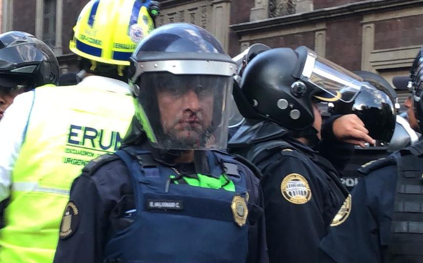 El gobierno de la Ciudad de México informó que el saldo de la marcha es 14 personas lesionadas, nueve son policías con heridas leves y tres más fueron trasladados a hospitales.