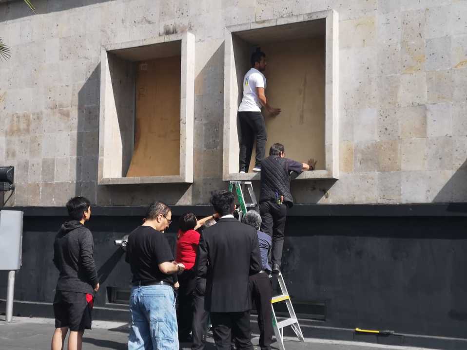 Previo a la marcha que se realizará a las 16:00 horas, algunos edificios públicos y privados, así como iglesias, museos, sucursales bancarias y restaurantes, entre otros, amanecen con tapiales.