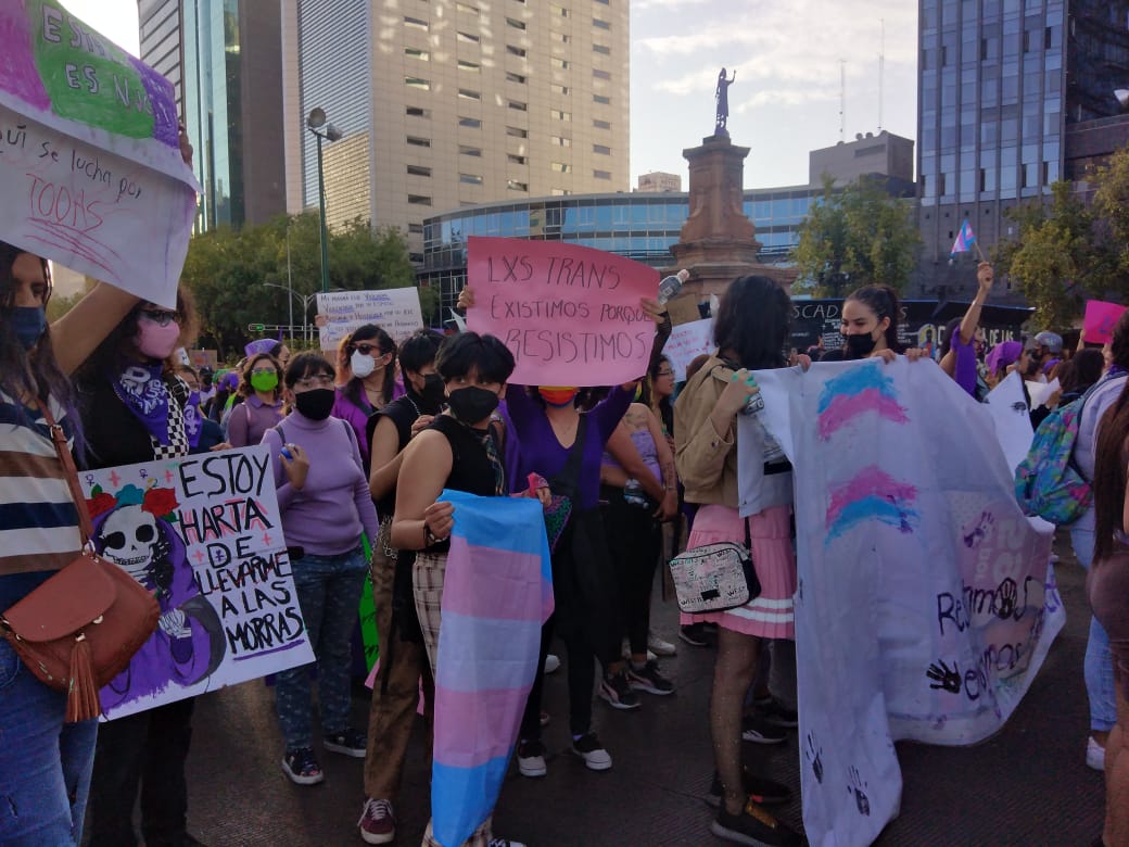 Pese al rechazo de grupos transexcluyentes, este contingente se manifestó contra los feminicidios y las diferentes formas de violencia y discriminación de las que son víctima a diario.