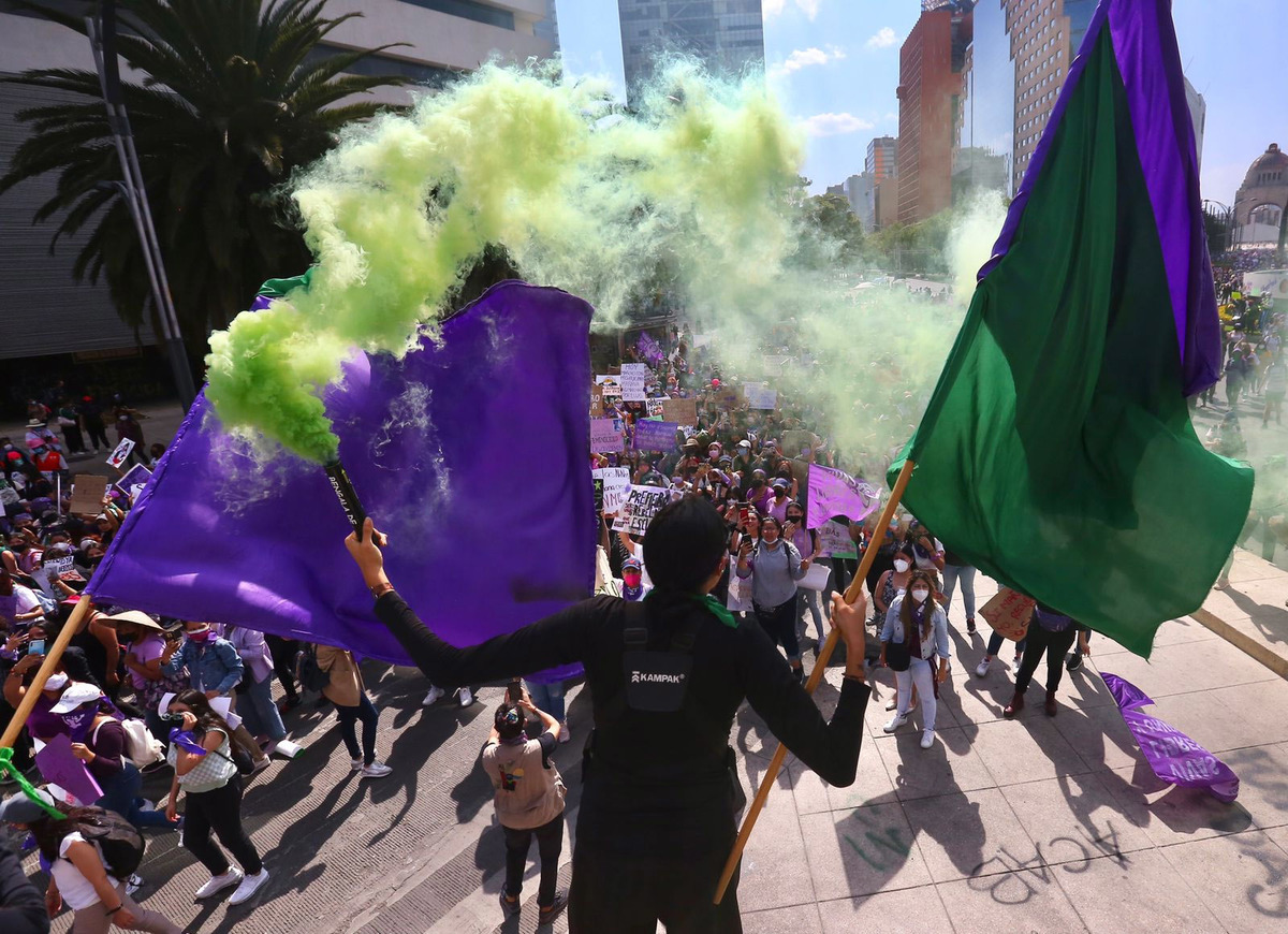Grupos de mujeres comenzaron a realizar protestas en distintos puntos de la Ciudad de México como el Monumento a la Revolución, Paseo de la Reforma y el Zócalo capitalino.