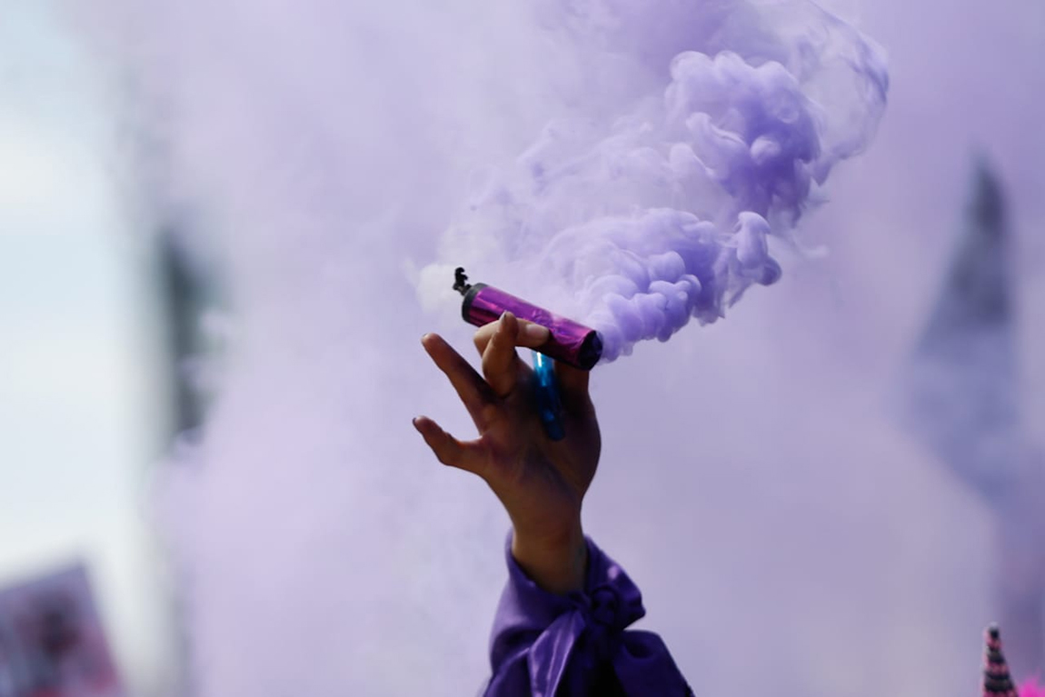Sin embargo, una colectiva feminista aclaró que no son cohetones, sino palos de humo de colores "completamente inofensivos", afirmaron.