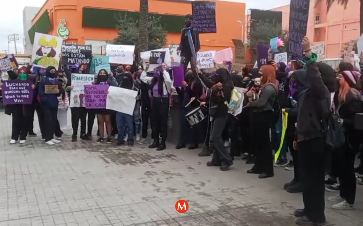 Un grupo de mujeres protestaron frente a la Presidencia Municipal de Reynosa en el marco de las movilizaciones por el 8M, pidieron un alto a la violencia contra el género.