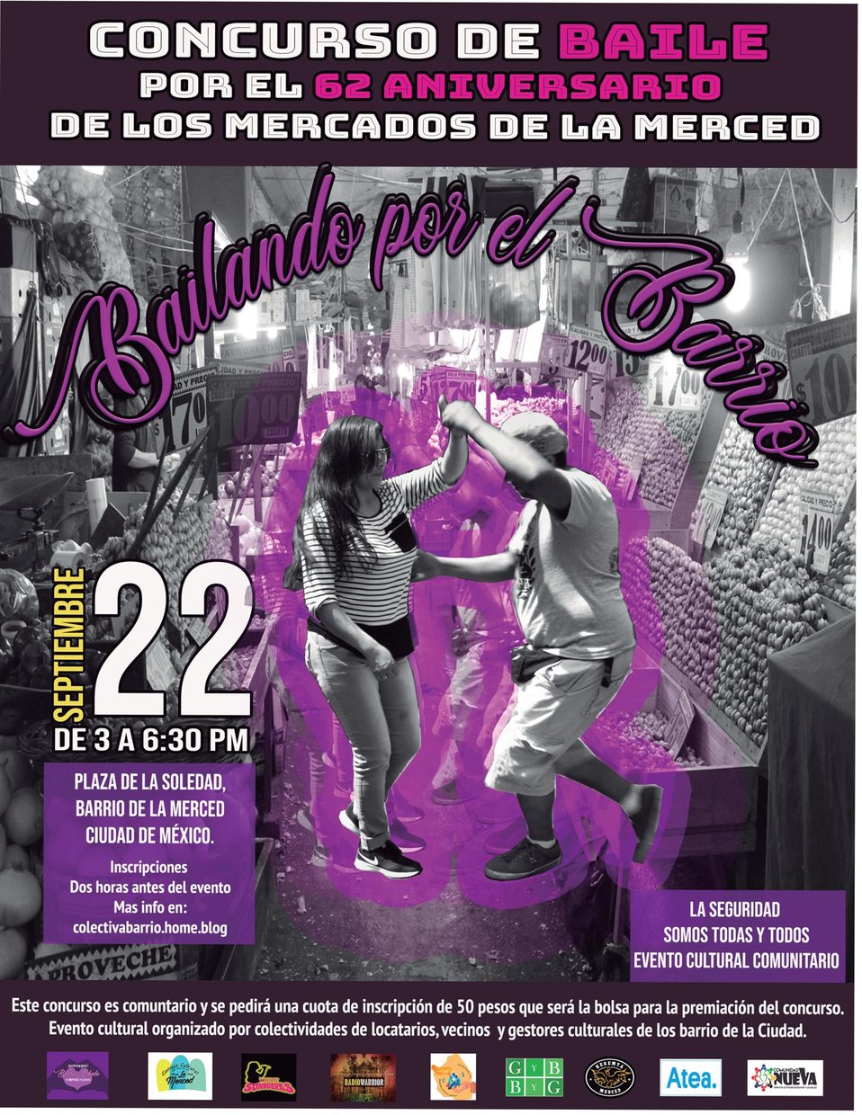 Locatarios, vecinos, visitantes, grupos culturales y otros barrios organizan este bailongo para conservar, visibiliar y divulgar la importancia de los mercados públicos en la convivencia comunitaria, la reproducción social, cultural y simbólica de los habitantes.