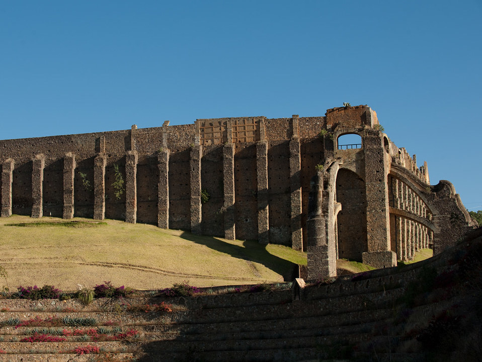 En la explanada de esta mina se puede apreciar el ingenio y fuerza que se requirió para ser construida. Aún se puede observar el malacate y el tiro de la misma, junto con dos enormes ruecas con cables de acero cuyas poleas sirven para bajar y subir trabajadores a la mina.