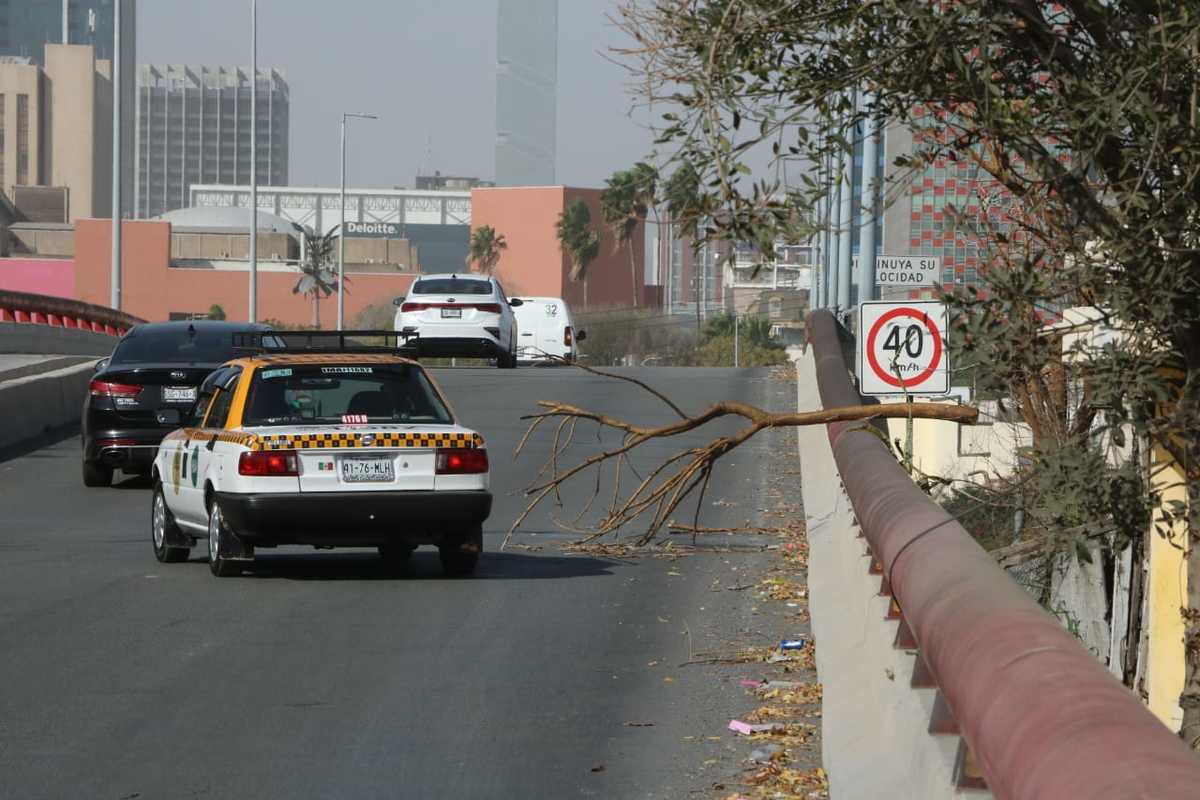 Ante la presencia de fuertes vientos en la zona metropolitana de Monterrey desde la madrugada de este sábado, Protección Civil del Estado ha reportado hasta el momento 56 eventos entre los que resaltan la caída de postes, árboles, panorámicos, así como registro de cortos circuitos, cables colgando y accidentes viales.