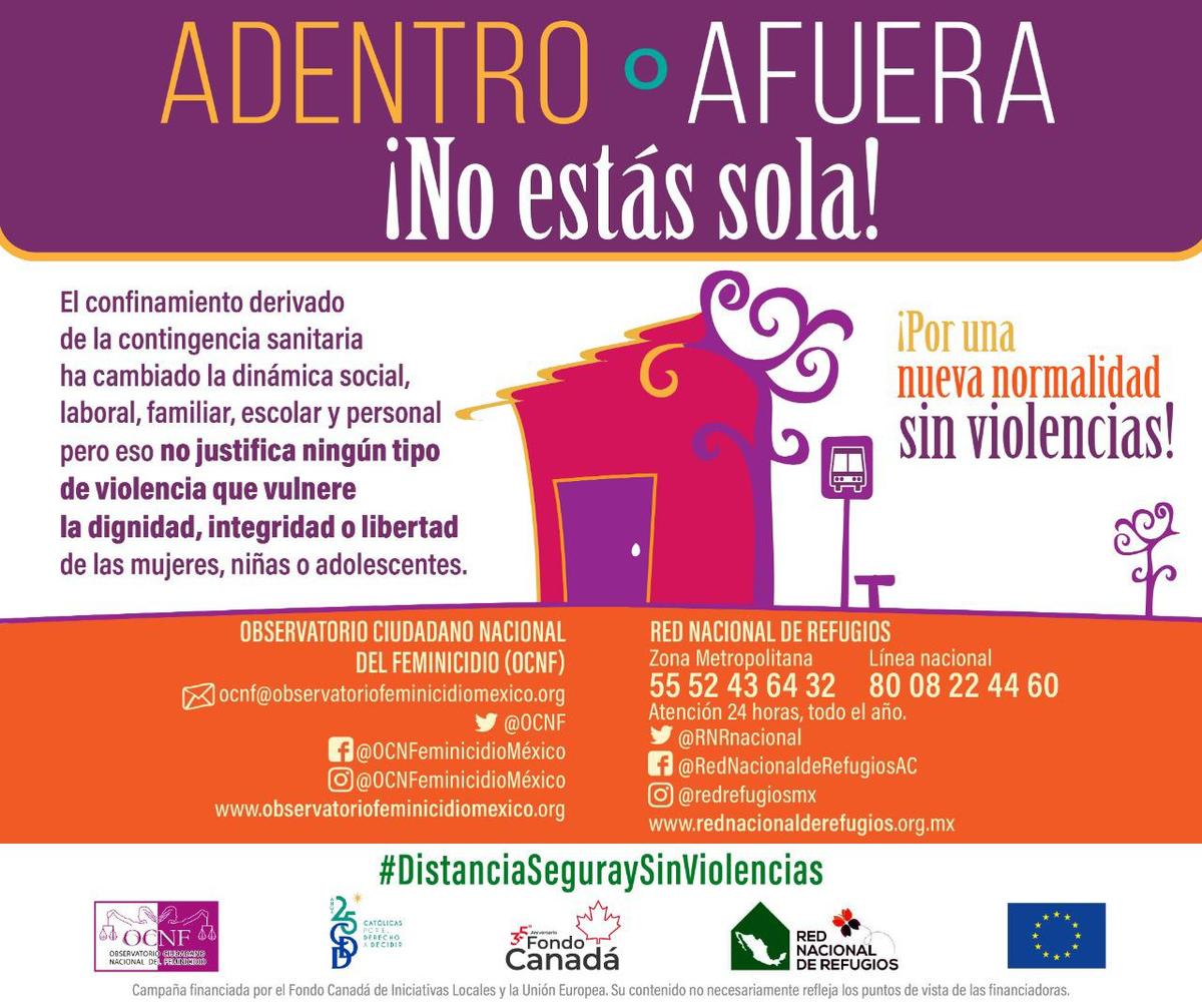Esta acción, lanzada por el Observatorio Ciudadano Nacional de Feminicidio (OCNF) en conjunto con la Red Nacional de Refugio y Católicas por el derecho a decidir, anunció que seguirá brindando asesoría, acompañamiento y apoyo a mujeres víctimas de violencia en 17 entidades federativas hasta el 28 de febrero del 2021.