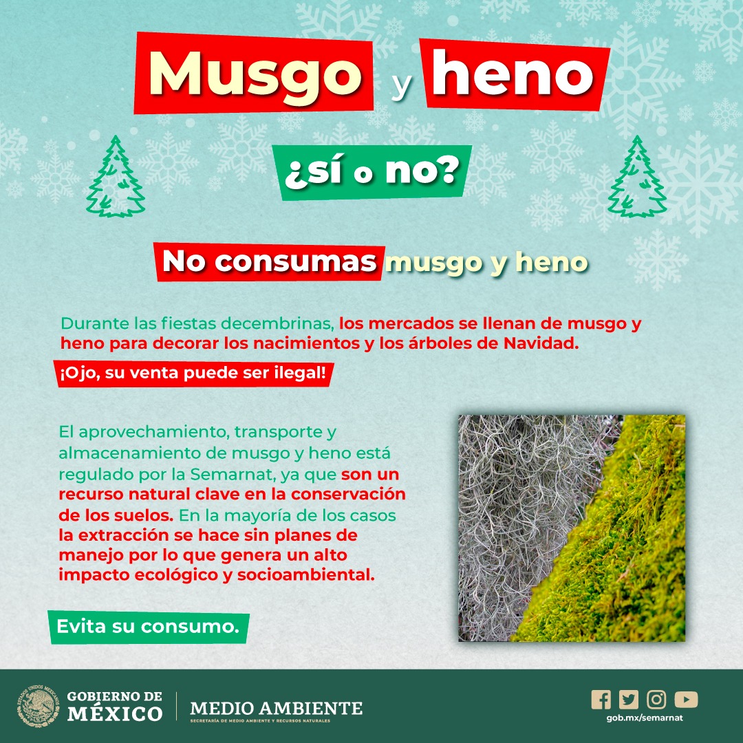 La Secretaría de Medio Ambiente y Recursos Naturales (Semarnat) refiere que estos ayudan al cuidado de los ecosistemas, por lo que en estas celebraciones de Navidad y fin de año lo recomendable es dejarlo en el bosque y evitar su consumo.