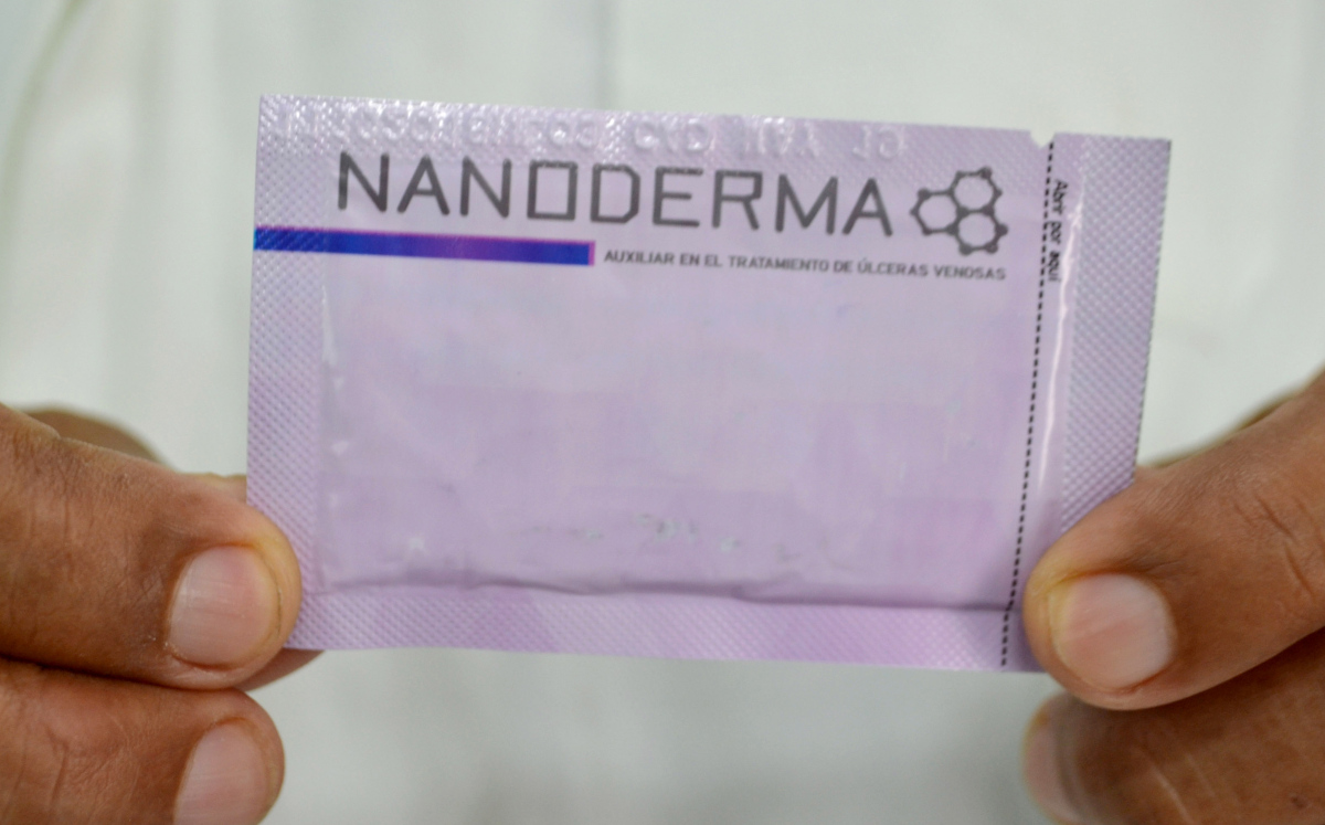 “Se trata de un material híbrido, un talco para ulceraciones y heridas de todo tipo, que consiste en una fase activa que tiene características de moléculas orgánicas, producto de un extracto de plantas, y la parte inorgánica, que es la zeolita”, comenta.