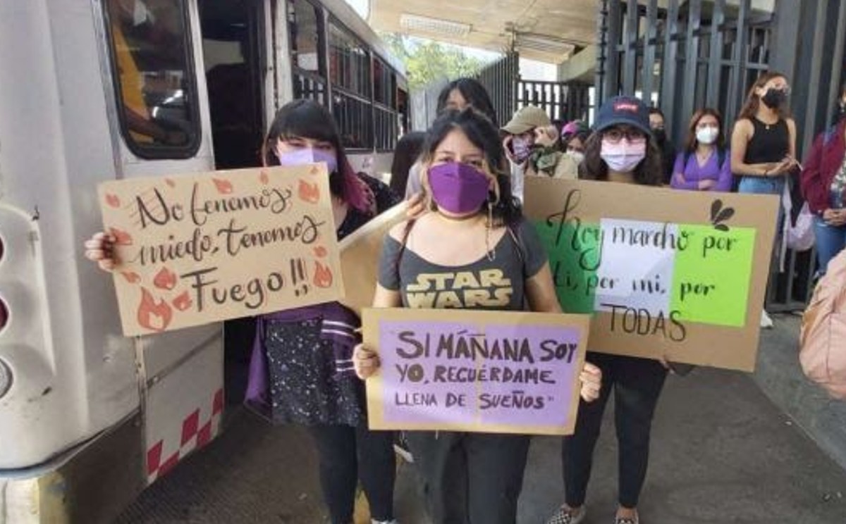 La mayoría portaba carteles para exigir el freno de la violencia de género, a los feminicidios, las desapariciones de mujeres, así como al abuso y acoso sexual.