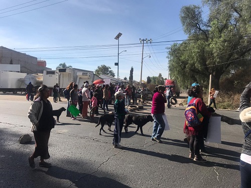 Un centenar de padres de familia efectúan un bloqueo sobre la carretera Texcoco-Lechería antes de llegar al puente de Tepexpan, en protesta porque autoridades educativas cerraron la escuela "Mónica Pretellini de Peña".