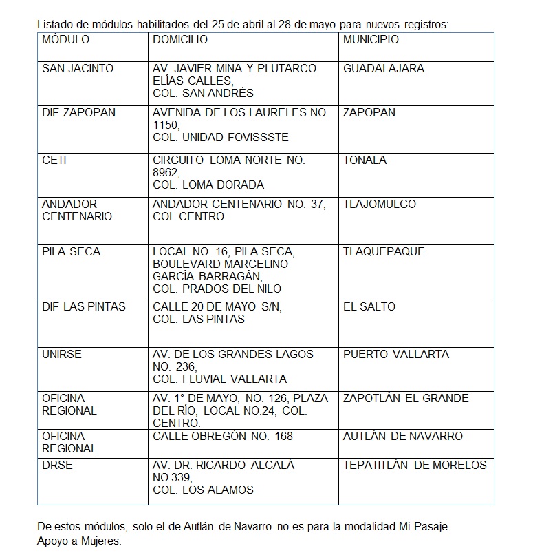 El periodo para acudir al módulo seleccionado en la plataforma es a partir del 25 de abril al 28 de mayo (con cubrebocas, respetando las medidas sanitarias), para la validación de documentos y entrega del beneficio correspondiente: