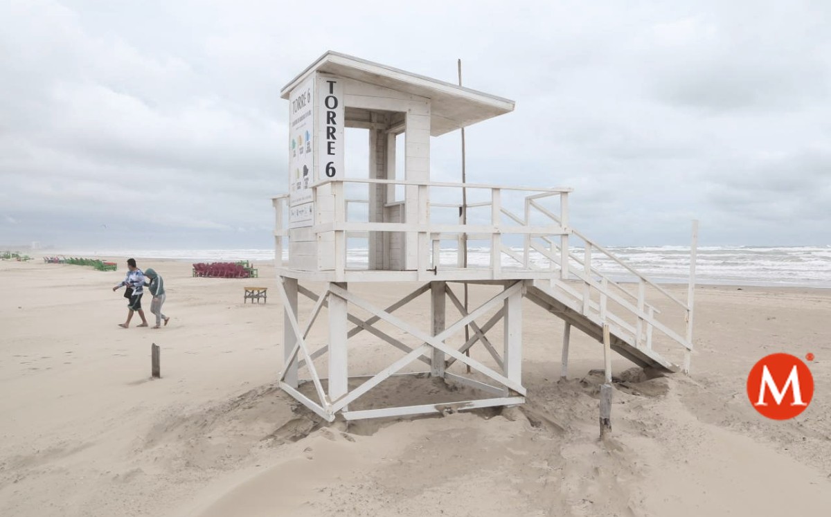 Pese a las inclemencias del tiempo por la entrada de un nuevo frente frío, visitantes han ingresado al mar, ya que no se colocó bandera negra de playa cerrada y las torres salvavidas se encuentran vacías aún después de mediodía de este domingo.