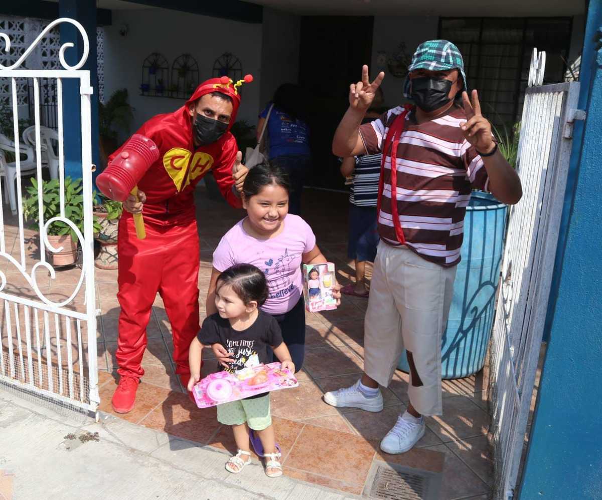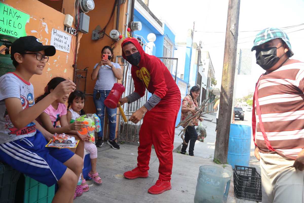 Los trabajadores de limpia pública de Ciudad Madero decidieron disfrazarse de personajes de dibujos animados y regalar juguetes a los niños en el marco del 30 de abril.