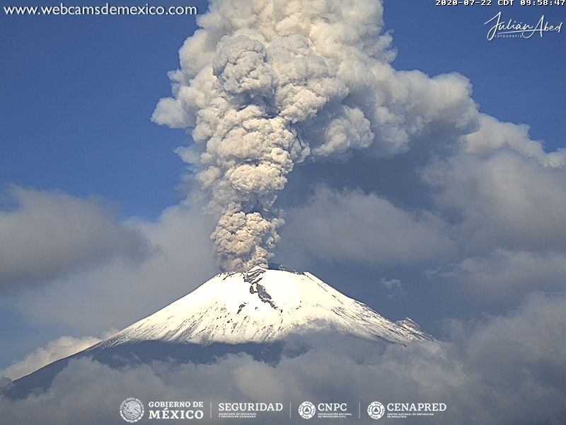 “Desde las 07:59 horas y al momento de este reporte se observa una emisión constate de vapor de agua, gases y ligeras cantidades de ceniza que se dispersan hacia el oeste-suroeste”, detalla el reporte del organismo dependiente de la Coordinación Nacional de Protección Civil (CNPC).