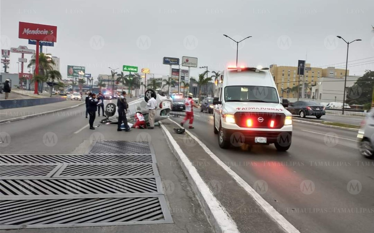 Uno de los accidentes fue sobre la avenida Hidalgo, luego de que una mujer que conducía una unidad de una empresa farmacéutica se volcara luego de bajar por el distribuidor vial del Posada a exceso de velocidad.