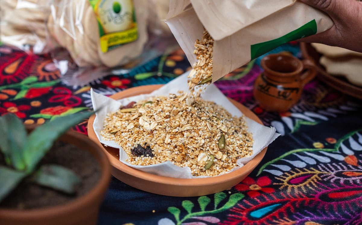 “La granola tiene ocho cereales diferentes entre ellos: avena, amaranto, chía, arándanos, pepita de calabaza y ajonjolí. Lo endulzamos con jarabe de maguey, que es natural y lo pueden consumir personas diabéticas. Además, ayuda con problemas gastrointestinales como son: colitis, gastritis, problemas de estreñimiento”.