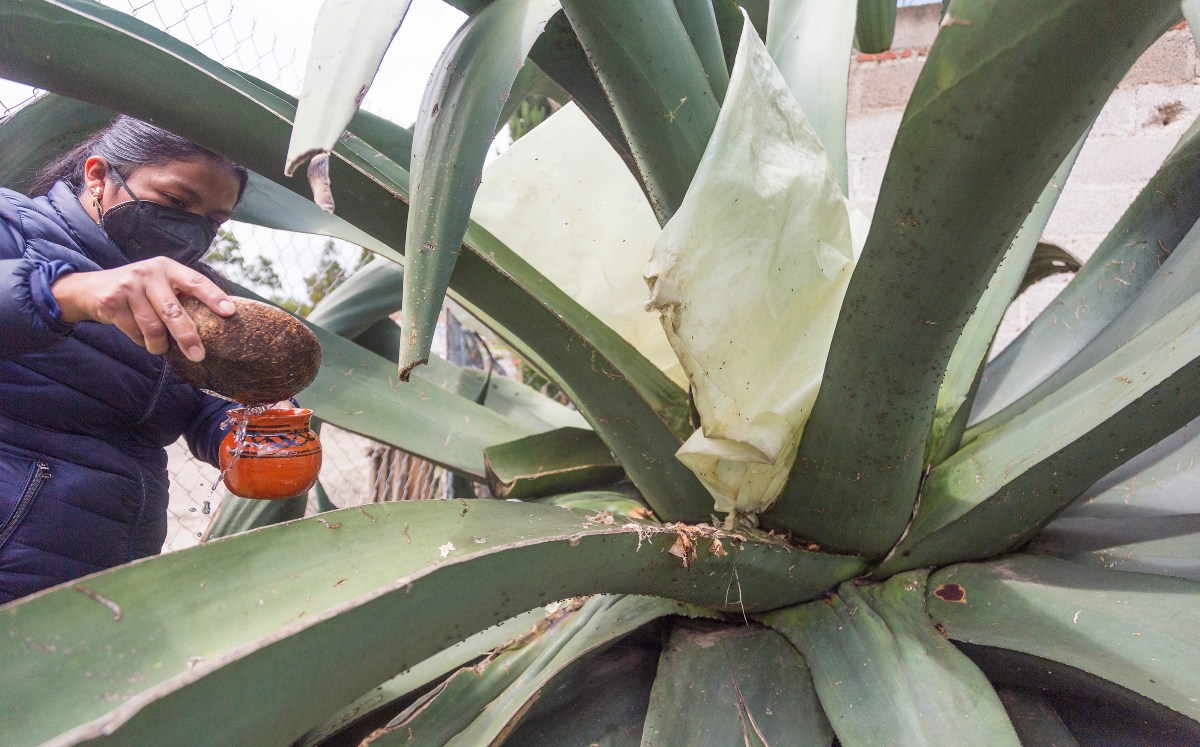 “Él se encarga de todo. Él las ve, las cuida, hace los trasplantes y también hace el raspado para la extracción del aguamiel. A él le enseñó su abuelo y sabe perfectamente cómo tratar a la planta para que tenga un mejor rendimiento y vida”, confiesa Mercedes.