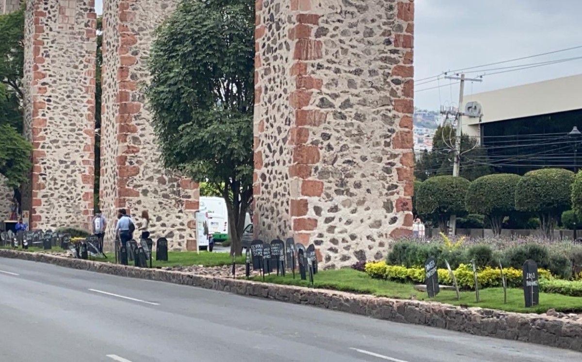 Fueron más de 500 lápidas colocadas en los arcos queretanos, representando a cada una de las que ya no están.