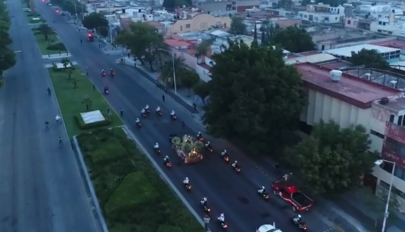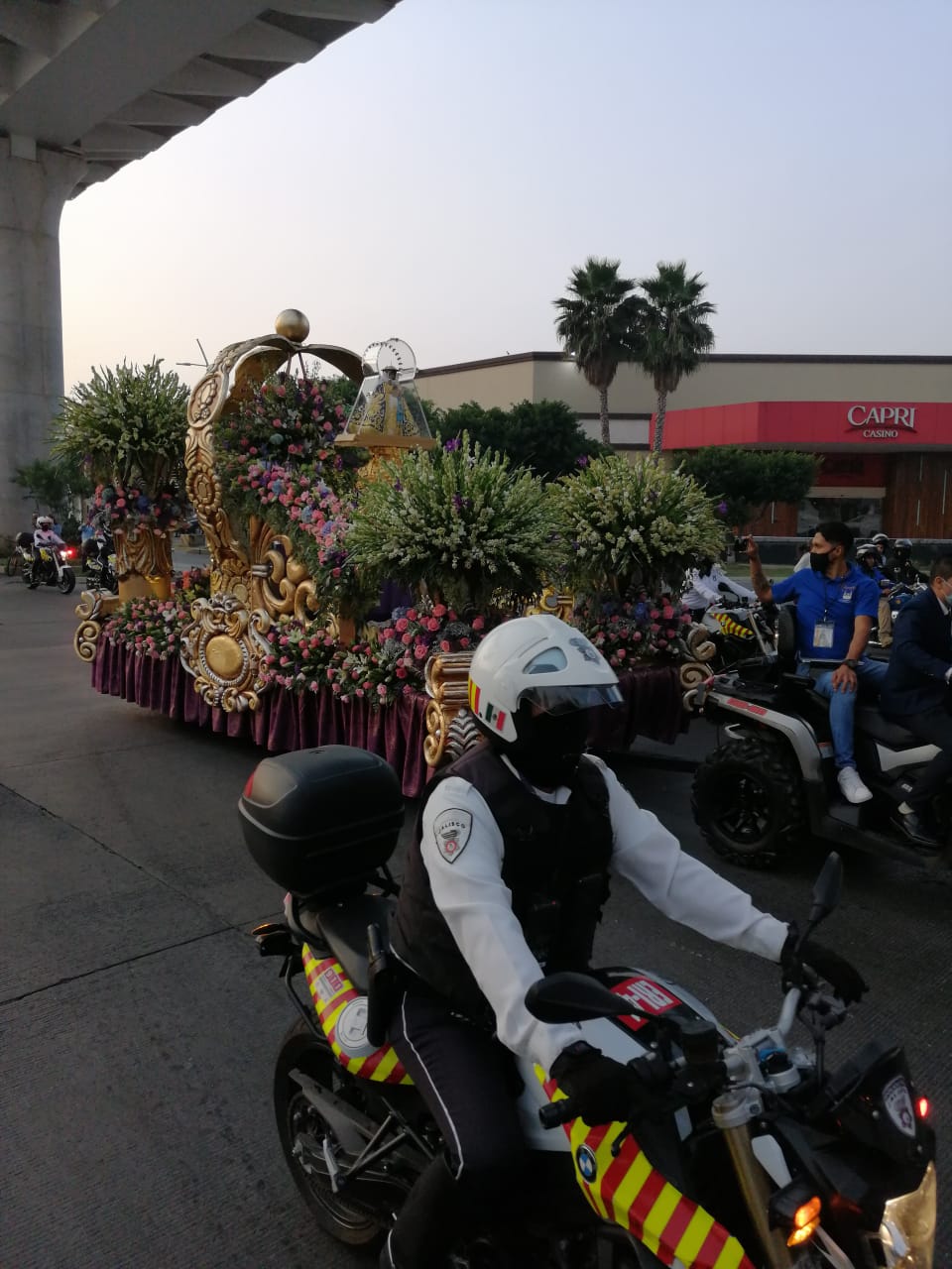 Un fuerte contingente de elementos de seguridad resguarda a el paso de La Generala que avanza rápidamente por avenida Federalismo, esto debido a que no hay multitudes, sin embargo algunos fieles la acompañan desde la baqueta gritándole y echándole porras.