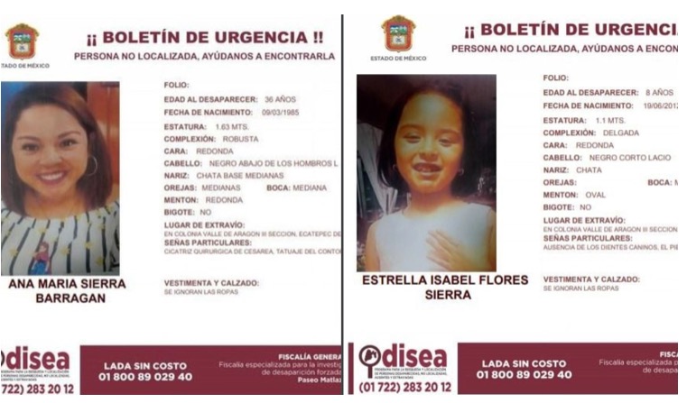 La familia señaló que la última vez que fueron vistas la maestra y su hijita fue en la tercera sección de la colonia Valle de Aragón.