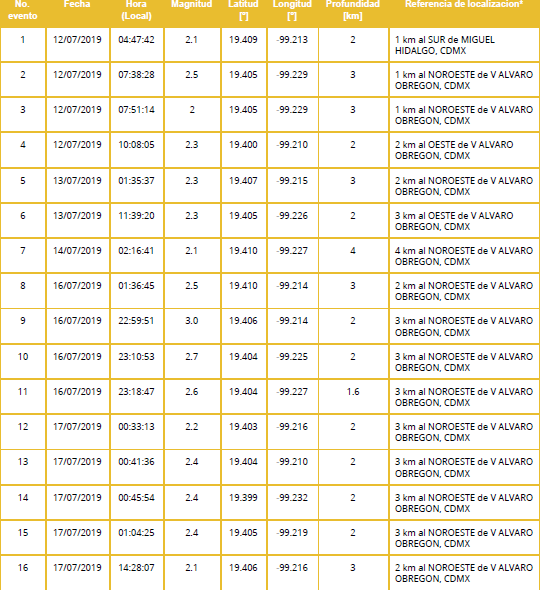 El Servicio Sismológico Nacional ha registrado 16 sismos con epicentro en la alcaldía de Miguel Hidalgo en la Ciudad de México, durante los días 12, 13, 14, 16 y 17 de julio.