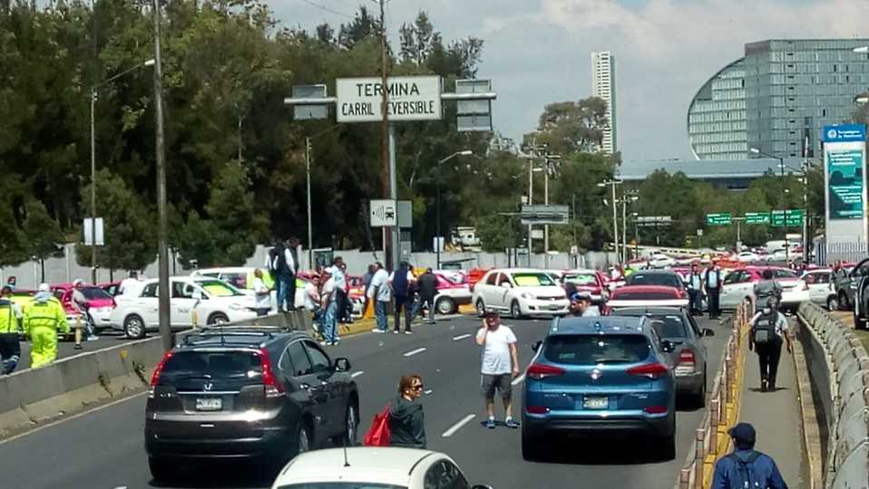 En tanto, una caravana de taxistas avanza sobre Circuito Interior, a la altura de Pino al Sur. La alternativa vial es Cuitláhuac y General Mariano Escobedo.