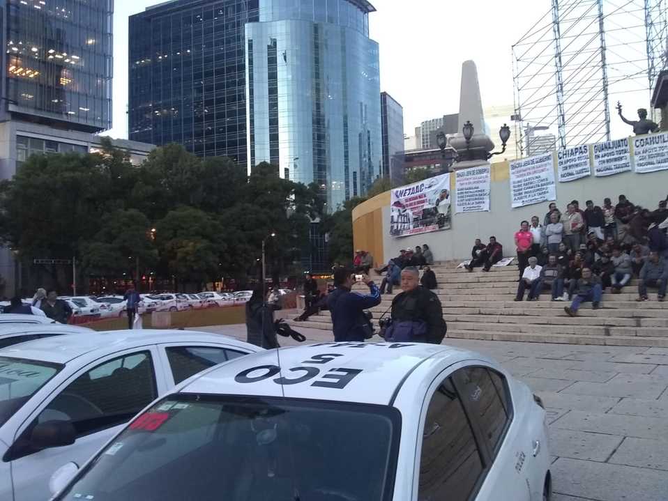 La Secretaría de Seguridad Ciudadana informa que en el Ángel de la Independencia, entre Insurgentes y Lieja, hay un aproximado de 500 taxistas del de 28 estados alistando una marcha al Zócalo.
