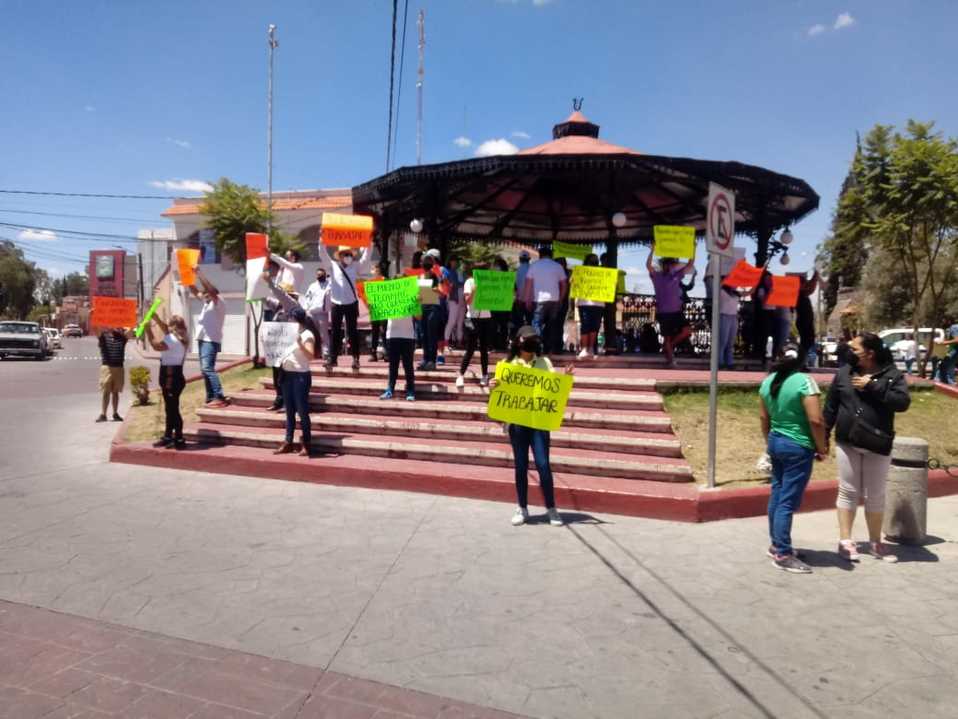 Los vendedores se reunieron en la carretera federal México-Pachuca, en la avenida 5 de Mayo, y formaron una valla hasta el inmueble municipal, portando pancartas y cartulinas en las que exigieron el reinicio de sus actividades y la renuncia del titular de Desarrollo Económico local, Alejandra López García.