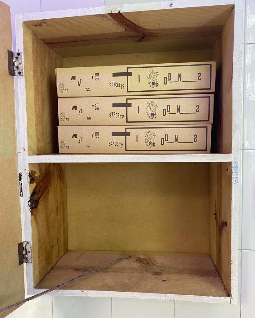 Pasarán unos minutos para que la agradable voz indique cuál espejo deben abrir para finalmente recibir los alimentos y una vez que esto suceda, se encontrarán empaquetados en curiosas cajas que yacen en un cajón que indicaría que las donas fueron colocadas por arte de magia, ya que no se observa en ningún momento algún indicio que muestre a los vendedores o miembros de la sociedad secreta.