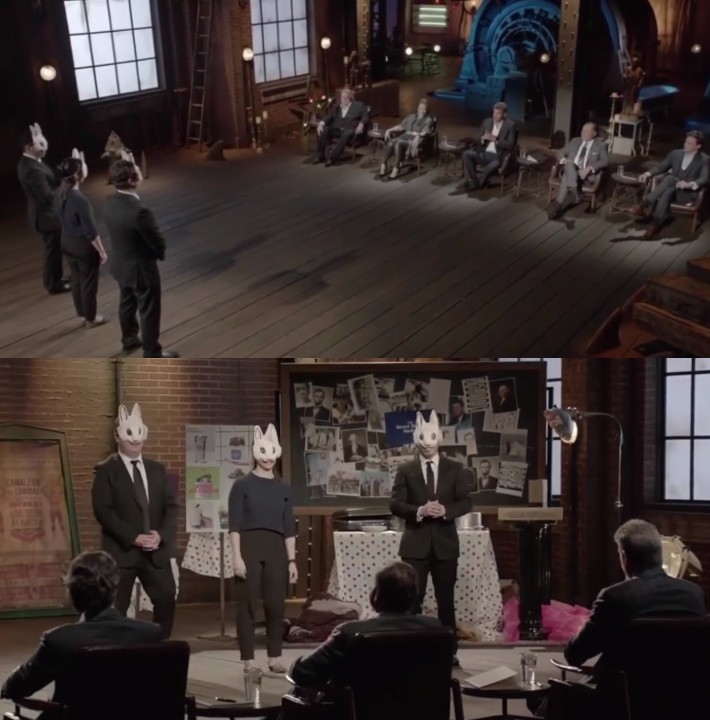En 2019, estos tres individuos, dos hombres y una mujer, que usaban máscaras que les tapaban la mitad superior de la cara, acudieron al famoso programa televisivo Shark Tank, que estrenaba su primera temporada. En ese entonces la propuesta fue rechazada, entre otros puntos, porque los 'tiburones' no accedieron a realizar un trato con alguien a quien "no le veían la cara” y que entregaba el 70 por ciento de su empresa.