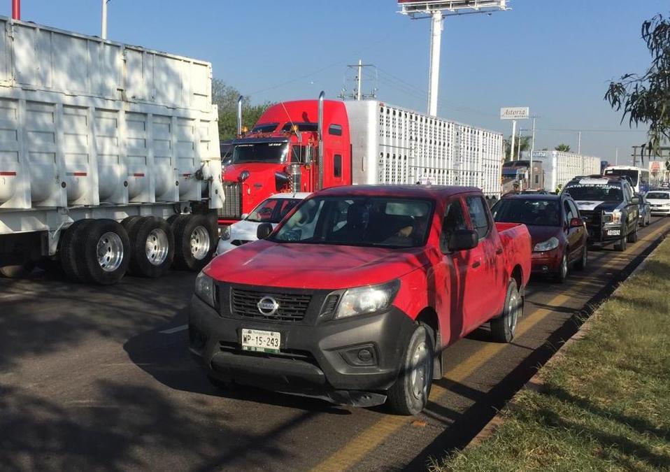 Los transportistas que protestaron continúan bloqueando un carril de la calzada Ignacio Zaragoza, a la altura de Puente de la Concordia.