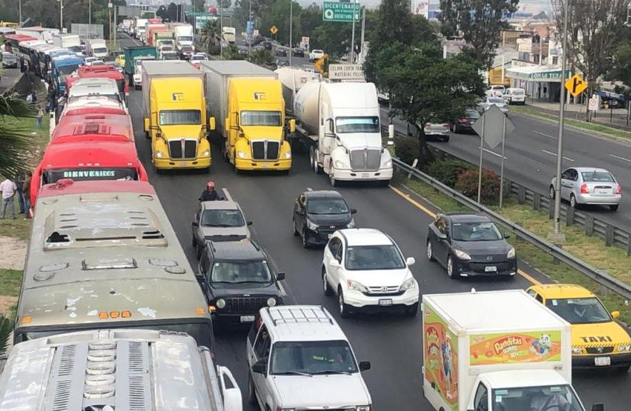 Al menos 20 camiones bloquean de manera intermitente en la carretera México-Querétaro